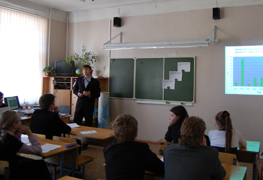 В первой секции, руководителем которой был учитель информатики Сергеев Алексей Петрович, учащиеся представляли свои доклады по предметам естественно-научного цикла.