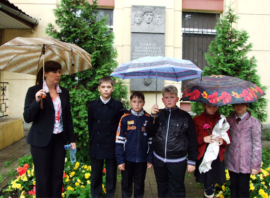 Идя с цветами под дождем, ребята вспоминали такую же осень в Ленинграде 70 лет назад. Город был осажден, но в нем продолжалась жизнь – опадали с деревьев листья, дети шли в школу… Многие из них не пережили страшных блокадных дней…