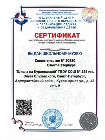 C 15 марта 2022 музей зарегистрирован на портале школьных музеев. Подробнее…