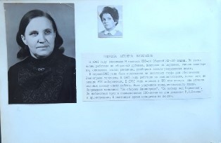 Из приказа № 212 по Отделу Народного образования Ленинского района от 15 июня 1942 года о назначении директорами недействующих школ. «Приказываю вновь назначенным директорам создать комиссию и принять имущество школ по акту. Акт о наличии имущества представить мне на утверждение к 20 июня 42 года.» Награды Медаль «За оборону Ленинграда», 1943 Медаль «За доблестный труд в Великой Отечественной войне 1941-1945 гг.», 1946 Орден Ленина, 1949 |