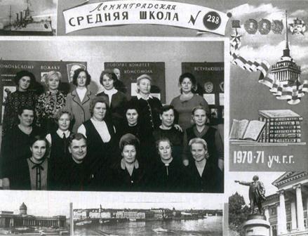 2 ряд, вторая слева — Сорокина Валентина Павловна, учитель русского языка и литературы, общий педагогический стаж 50 лет, из них 40 лет в Ленинском районе Ленинграда