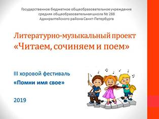 25.04.2019 в Доме молодежи «Рекорд» состоялся III хоровой фестиваль — наш ежегодный праздник! Литературно-музыкальный проект «Читаем, сочиняем и поем» под девизом «Помни имя свое!» — новая традиция нашей школы!