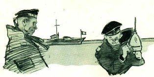 Вдруг взрыв раздался под самым бортом катера. Его сильно кинуло в сторону. Олег Ольховский едва удержался на ногах. Он обернулся и увидел, что командир лежит на палубе. А у штурвала стоит отец. Из-за грохота не слышно было, что он крикнул, но Алька понял по движению губ: